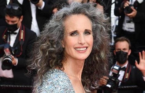 Tem uns meses que decidi parar de pintar os cabelos. Foi acontecendo naturalmente: passou um mês, dois, nada de vontade de pintar, e eu também tive uma das crises de queda capilar que eventualmente ocorrem quando o nível de estresse ultrapassa o limite que estou acostumada a suportar, o que era mais uma razão para não fazê-lo. Cortei então um bom palmo de cabelo e segui a vida. O cabelo seguiu branqueando, e eu fui gostando. Gostando da minha imagem no espelho, me sentindo bonita, poderosa, tendo vislumbres de uma coisa meio Cruella Deville (que, inclusive, é um dos meus objetivos quando os brancos aumentarem, deixar metade preto, metade branco, uma coisa bem impactante, a meu ver. E bem bruxona, do jeito que eu gosto, incorporando o terceiro aspecto da deusa tríplice.